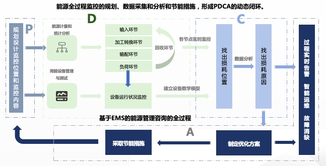 在某半导体制造企业里上线了能源消耗可视、能源消耗可知、能源使用可控的智能化能源管理系统;建立了能源体系行业标准,实现6个厂区厂务能耗数据的采集、存储、统计分析、节能诊断、优化控制和综合管理,在各系统稳定运行的前提下,减少能源消耗,提高能源利用率。