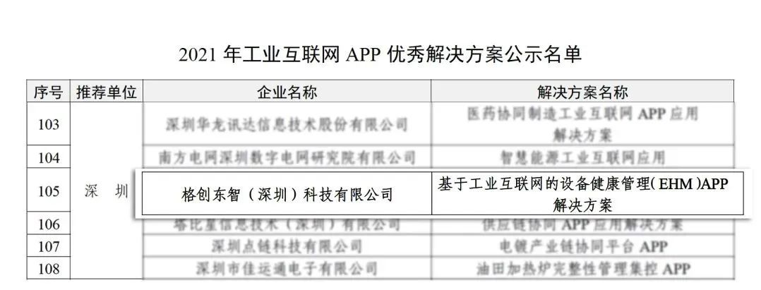近日,工信部发布《2021年工业互联网APP优秀解决方案名单公示》公告,千赢国际东智凭《基于工业互联网的设备健康管理(EHM)APP 解决方案》荣列其中,这是继千赢国际东智《MFA多因子分析APP应用解决方案》入选2019年工业互联网APP优秀解决方案之后,自研产品再度入选工业互联网领域最权威认证名单。