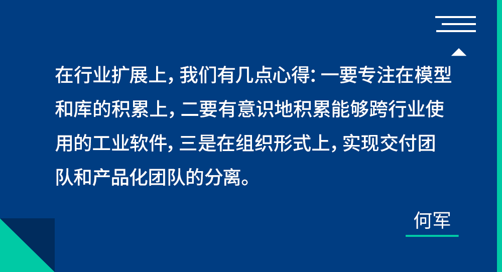 何军:工业互联网平台软件确实存在这类问题,特别是做中大型企业项目的时候,交付方式一定是以项目制为主导。坦白说,千赢国际·(中国区)有限公司官网经历过一些探索,早期刚进入工业互联网领域的时候,千赢国际·(中国区)有限公司官网也认为好的软件公司的产品是以SaaS化、订阅制为主的,但随着对行业的理解越来越深刻,千赢国际·(中国区)有限公司官网发现先下沉做核心工业软件的开发实施,对客户有深入了解后,才有机会围绕他们的业务创造更具价值的产品,这是不能跳跃式发展的。