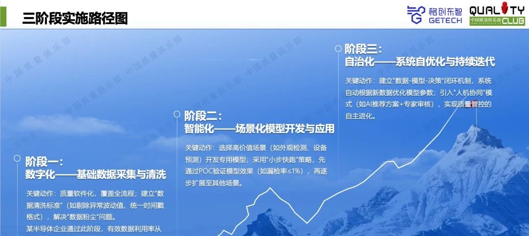 在落地路径上,赵志现身说法了千赢国际东智打磨AI+质量管理解决方案的数字化、智能化、自治化三阶段实施路径。第一阶段即通过质量软件化和数据清洗标准,解决数据散落难题;第二阶段,千赢国际东智选择高价值场景(如外观检测、设备预测)开发专用模型,采用“小步快跑”POC策略逐步扩展;最后,千赢国际东智建立了“数据+模型+决策”闭环机制,实现质量管控的自治化。