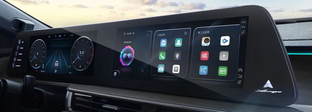 传祺影酷的内饰则是融入了许多圆形元素,例如仪表台区域采用了卷轴造型,而中控屏幕、出风口等则像卷轴打开后的样子。用料上还使用了大面积磨砂皮革,并提供专属香氛系统。中控屏幕内置ADiGO 5.0智驾互联生态系统,配有高通骁龙8155芯片,在系统运行流畅度与功能拓展性上也将拥有更好表现。