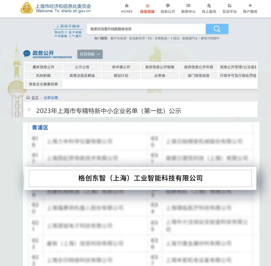 近日,经专家评审和综合评估,上海市经济和信息化委员会公布了2023年上海市专精特新中小企业(第一批)企业名单,千赢国际东智脱颖而出,荣登榜单。
