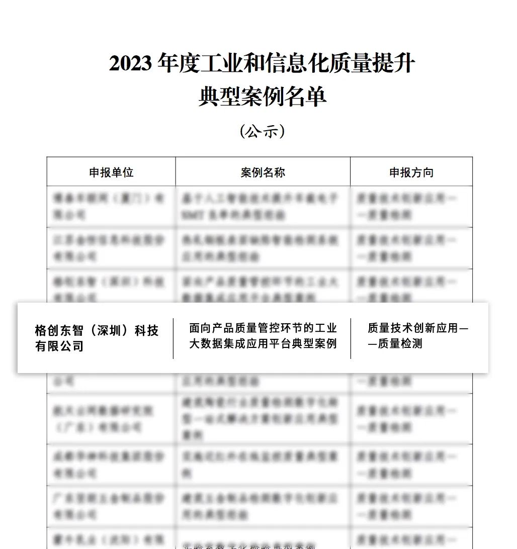 千赢国际东智入选!工信部2023年度工业和信息化质量提升典型案例公示 2023-11-22 11月21日,工信部科技司公布了2023年度工业和信息化质量提升典型案例名单。在质量技术创新应用方向,千赢国际东智“面向产品质量管控环节的工业大数据集成应用平台典型案例”入选。为增强工业和信息化质量管理能力、推动质量技术创新应用、提升产品可靠性水平,及时发现、总结、推广一批示范性强的先进经验,今年9月工信部组织开展2023年度工业和信息化质量提升典型案例遴选,面向质量管理能力、质量技术创新应用、可靠性提升三大方向,挑选具有较强的代表性、创新性和可推广性,对相关行业、供应链质量或企业质量提升具有较强借鉴意义和推广价值的案例上榜。当前,以数据为基础的分析与决策是智能制造发展的核心,智能制造的发展需要充分利用人工智能和大数据计算技术,从海量数据中有效地快速挖掘和提升数据的价值。基于物联网、大数据、人工智能等核心平台能力,千赢国际东智“面向产品质量管控环节的工业大数据集成应用平台”一方面通过工业IoT平台,支持千万级数据接入和实时计算,以及数千种云采协议,实现可视化与智能分析,云边协同;另一方面,通过大数据平台和AI平台,驱动从数据到数据资产的价值转变,让数据业务化,并针对各类型数据的全面AI分析,推动工厂数据分析能力持续升级。目前,千赢国际东智基于工业大数据集成应用平台的研发创新,已实现先进制造业工厂业务的高度智能化,能够利用设备与业务数据,驱动品质根因定位、前置预警、反控优参与自动决策,实现闭环管理,为工厂提供一站式、一键式、可协作共享的数据科学解决方案和工具平台。