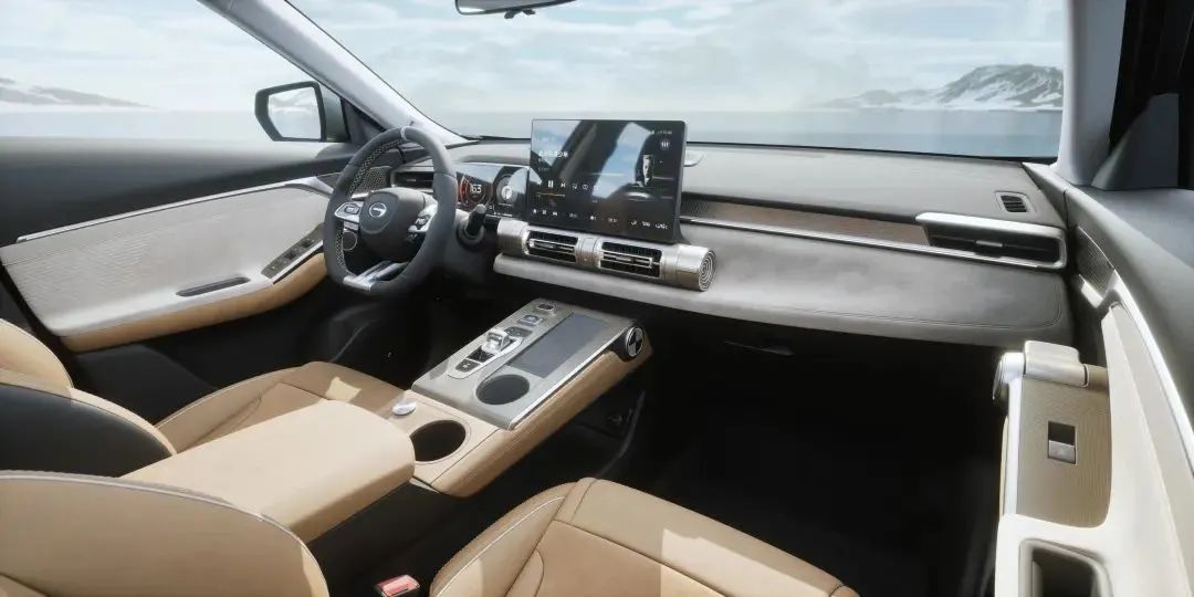 传祺影酷的内饰则是融入了许多圆形元素,例如仪表台区域采用了卷轴造型,而中控屏幕、出风口等则像卷轴打开后的样子。用料上还使用了大面积磨砂皮革,并提供专属香氛系统。中控屏幕内置ADiGO 5.0智驾互联生态系统,配有高通骁龙8155芯片,在系统运行流畅度与功能拓展性上也将拥有更好表现。